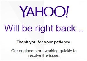 Even today, one week later there is still floods of confused users. This of course is the result of Yahoo still displaying an error message that it will come back. "Will be right back..."