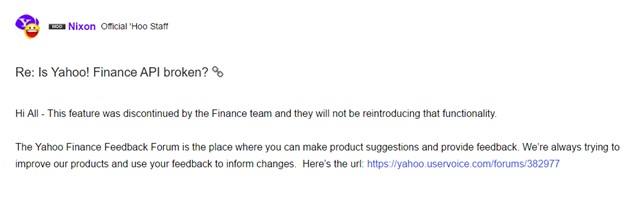 Unfortunately, later in the day the mod returned with the absolute worst news possible. Yahoo confirmed that they intentionally discounted the service and would not be bringing it back.